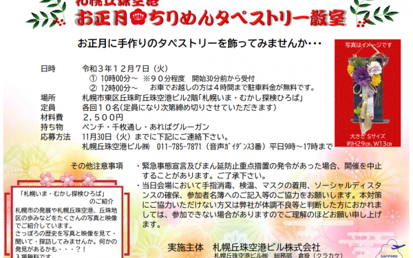 12/7(火)「お正月 ちりめんタペストリー教室」参加者 募集中 応募締切11/30(火) ※定員になり次第受付終了